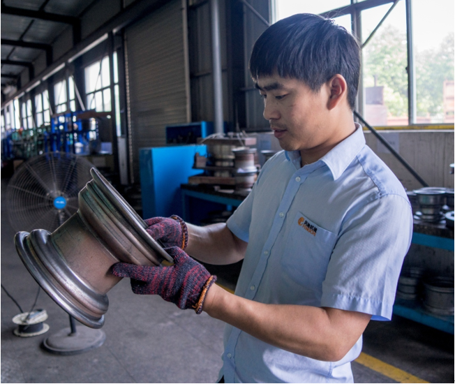 2、在常規鐵質輪輞的開發中,成功的把立式外滾+內滾的新工藝推廣到12X6、